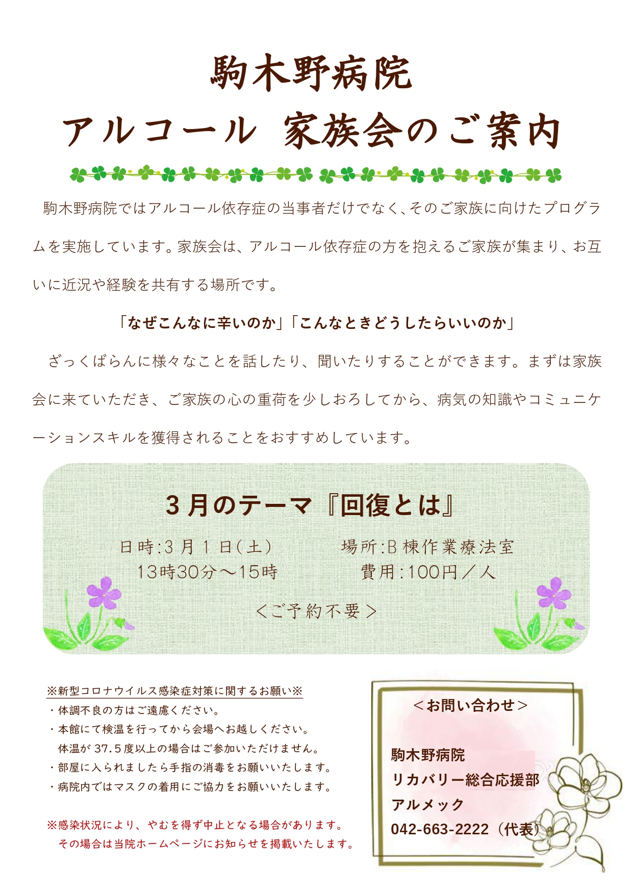 3月「アルコール家族プログラム」のお誘い